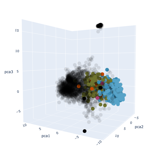 As a consequence of how PCA works (see [[Notes - Machine Learning MT23, Principal component analysis]]U if you’re interested), adding in my private notes will change the locations of all the existing points, so it won’t look the same as it does in the visualisation above.