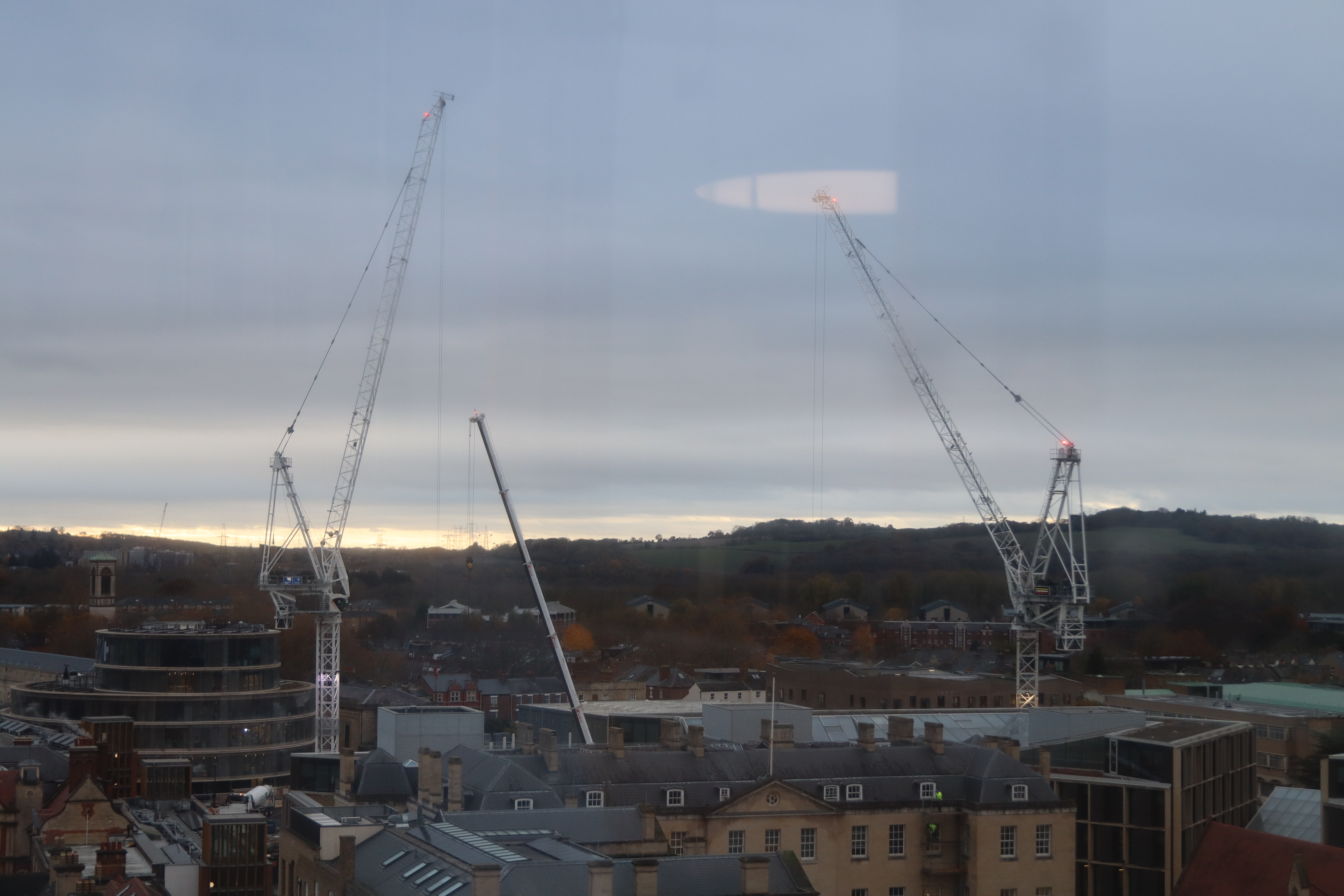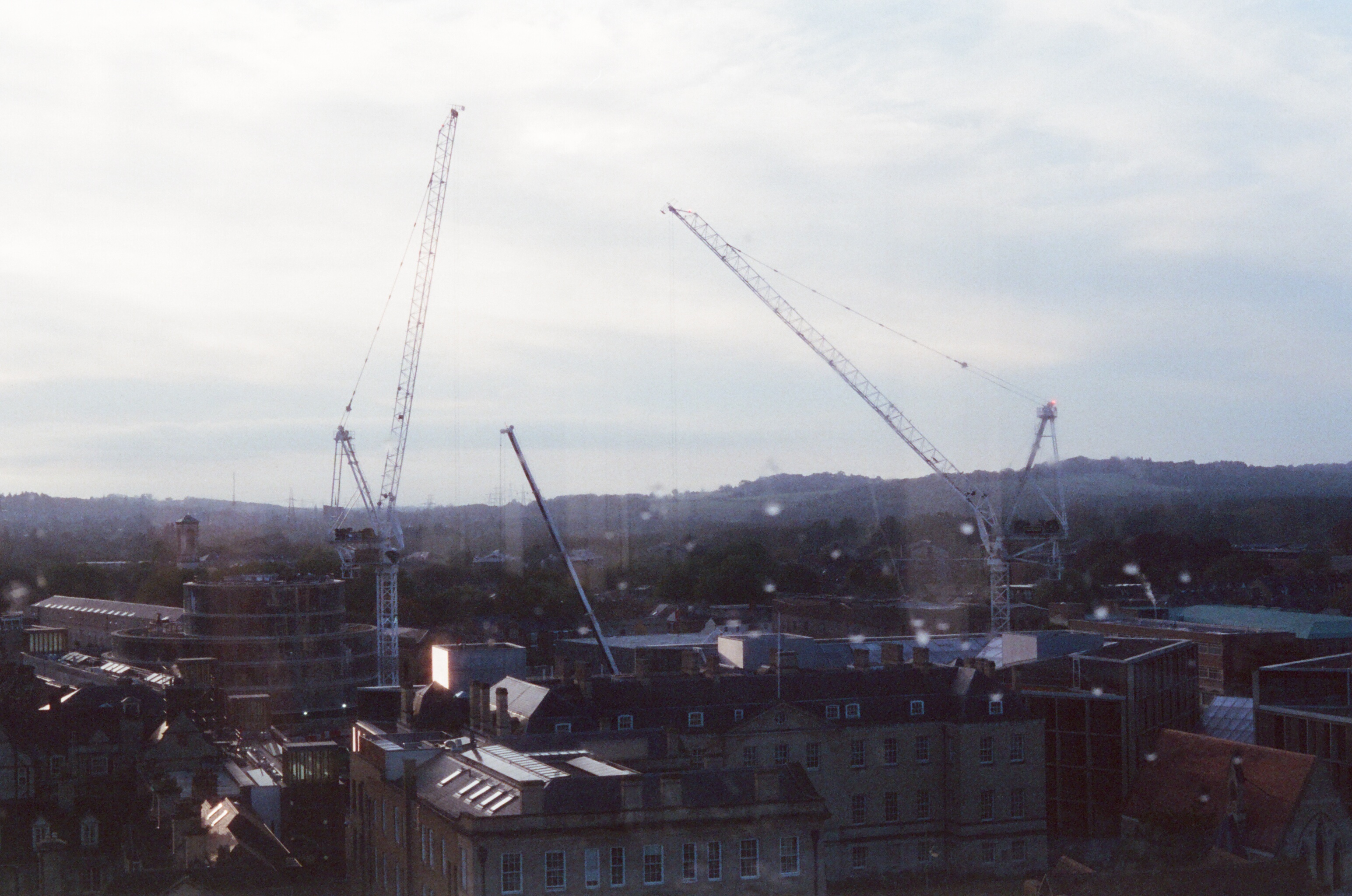 If you guessed that the first one was digital and the second one was film, you’d be right! This wasn’t a very hard quiz. Obviously it’s difficult to compare the two exactly since the weather is different, but I still prefer the film one. This was on Cinestill 800T, and you can spot the halations again on the very shiny side of a wall at the bottom of the leftmost crane.