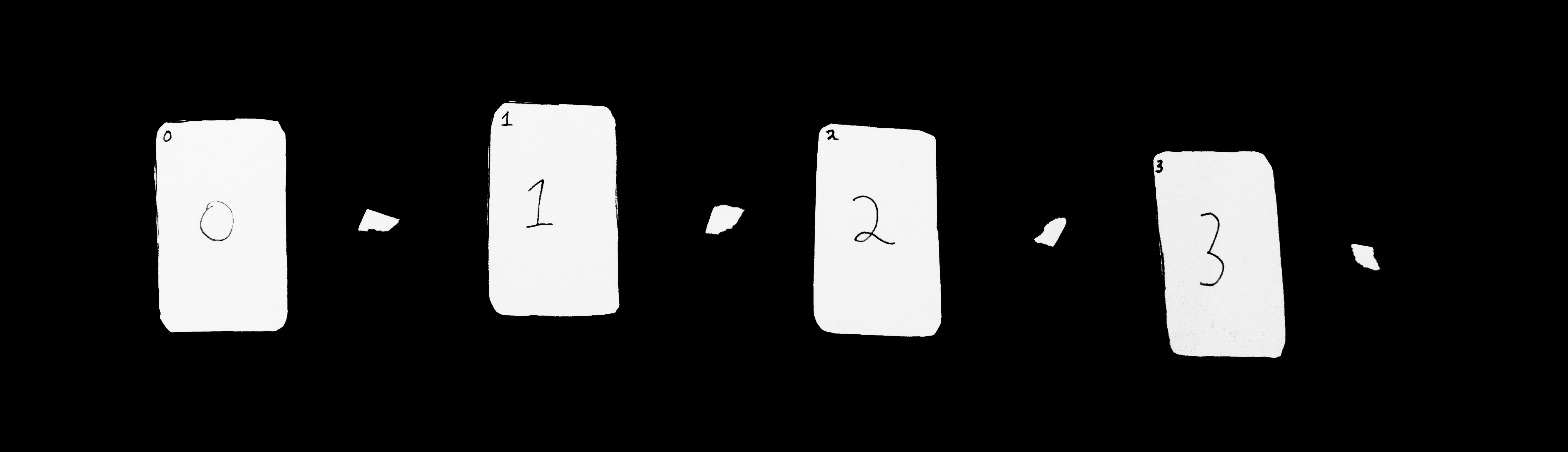 Here’s a useless-but-fun consequence: pick your favourite odd number $3 \le N \le 51$. You can use the relationship above to “effortlessly” calculate all binary expansions of $k/N$ using just a deck of cards, where “effortless” means being mentally effortless but definitely requiring some physical effort.