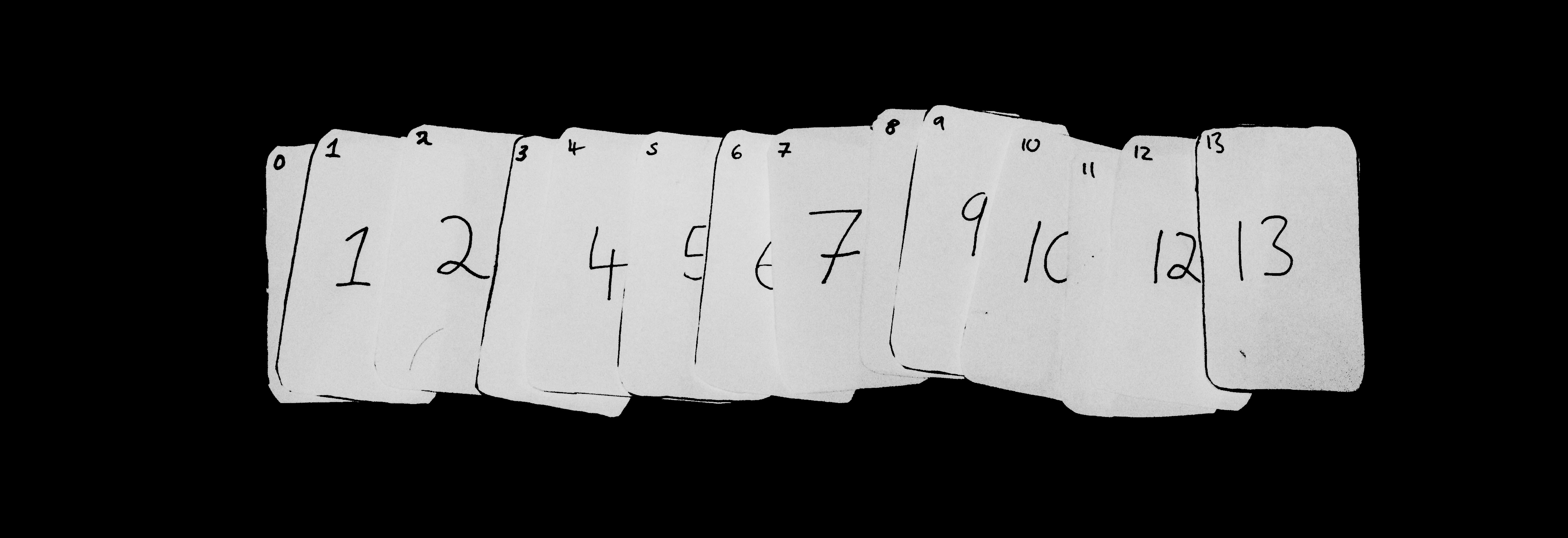 (notice that $13/13$ also begins $0. _ 2$, the reason for this will become clear shortly). Also prepare a corresponding pile of 14 cards, and label these from 0 to 13: