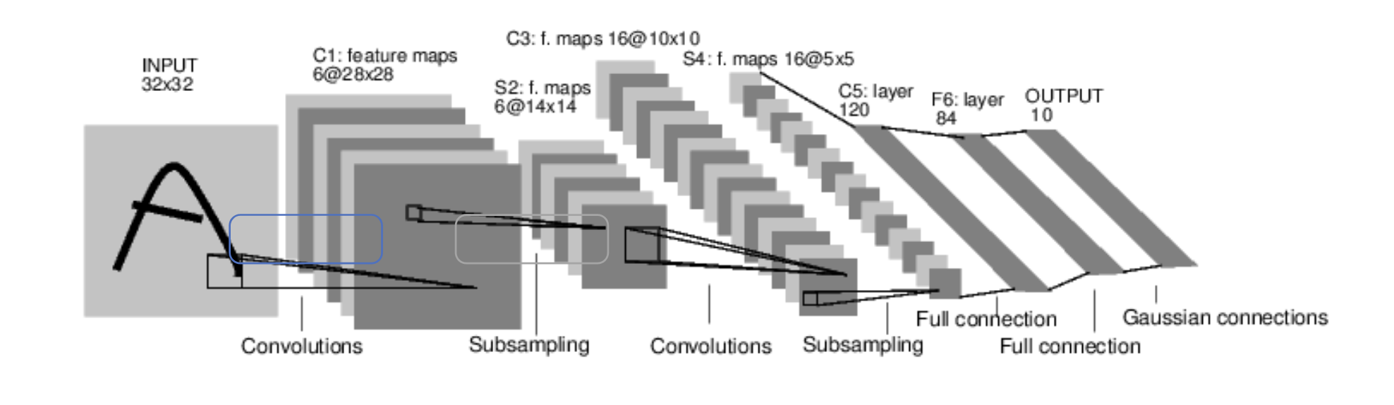- Alternating convolutional and subsampling layers