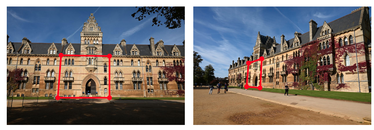 @Visualise how reversing the homography for the image on the right and overlaying it on the image on the right would look.