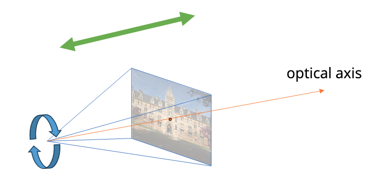 @Define the optical axis. What does rotation around this axis and translation correspond to?