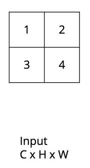 How would the bed of nails upsampling algorithm convert this $C \times H \times W$ image into a $C \times 2H \times 2W$ image?