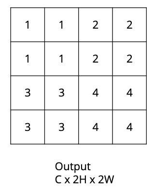 How would the nearest neighbour upsampling algorithm convert this $C \times H \times W$ image into a $C \times 2H \times 2W$ image?