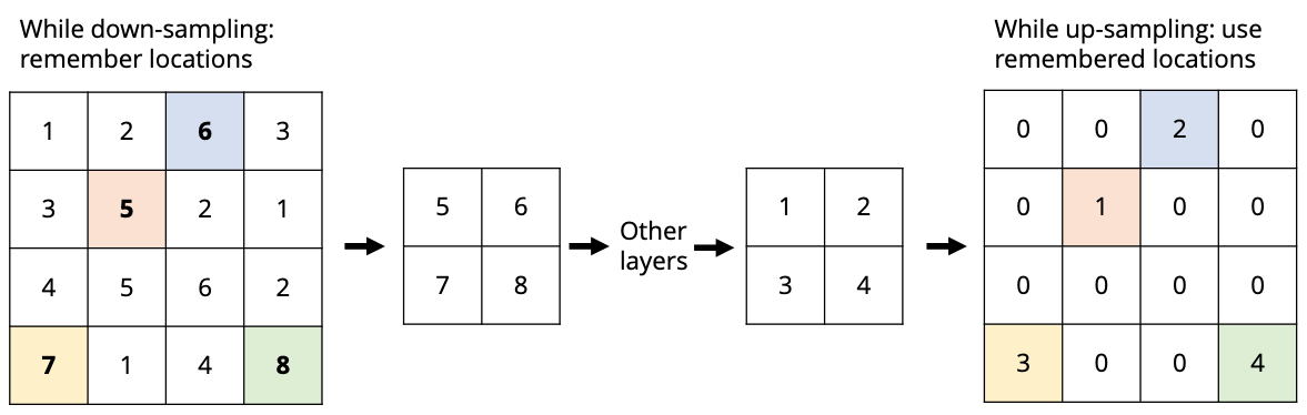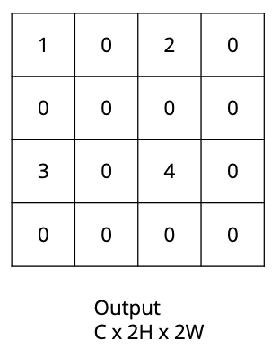 How would the max-unpooling upsampling algorithm convert this $C \times H \times W$ image into a $C \times 2H \times 2W$ image