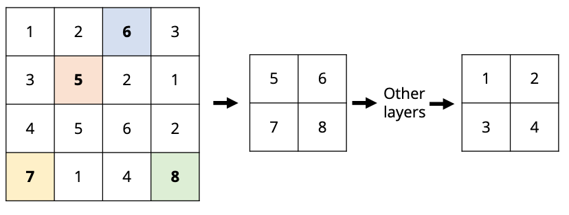 - Concatenating upsampled higher-level feature maps with higher-res, lower-level feature maps