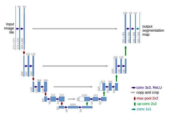@Visualise a U-net and @describe two of its special features that made it particularly effective.
